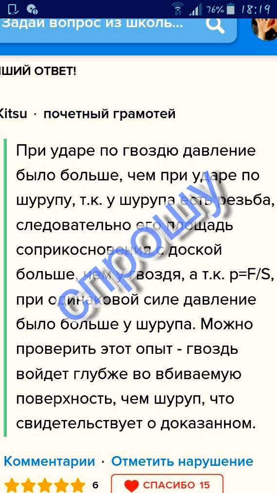 Молотком ударили по гвоздю и по шурупу. Какой из этих предметов произвёл большее давление на доску, если удары были сделаны с одинаковой силой? Аргументируйте ответ.