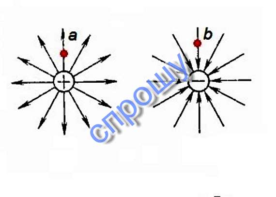 Выберите какую-нибудь точку электрического поля и укажите направление напряжённости в этой точке, если поле образовано: а) положительным точечным зарядом; б) отрицательным точечным зарядом.