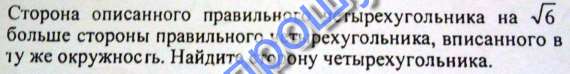 Сторона описанного правильного четырехугольника на √6 больше стороны