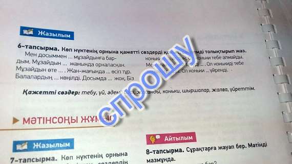 Помогите пожалуйста срочно! сделать 6 тапсырма в низу есть слова которые нужно вставить