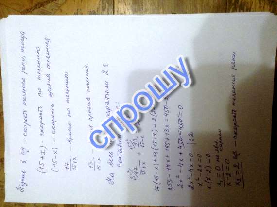 составим уравнение: 17/(15+х) +13/(15-х)=2