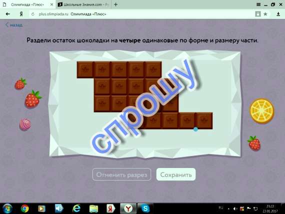Раздели остаток шоколадки на четыре одинаковые по форме и размеру части