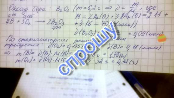 Какие массы бора и кислорода понадобится для получения 6,2г оксида оксида бора?