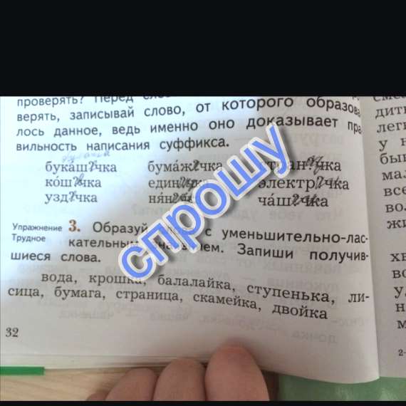 Водичка, крошечка, балалаечка, ступенечка, лисичка, бумажечка, страничка, скамеечка, двоечка