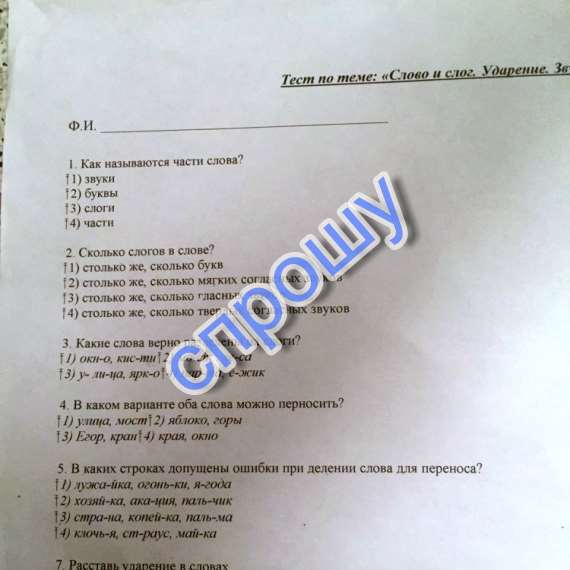 Тест по теме:Слово и слог.Ударение.Звуки и буквы.