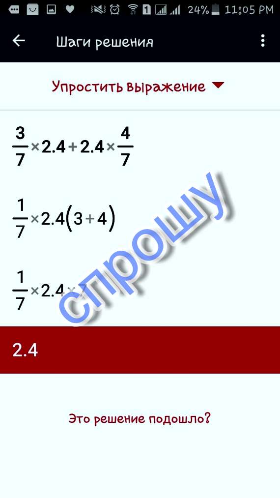 Найдите значение выражения 3/7*2,4+2,4*4/7 = ?