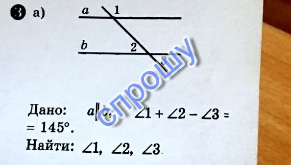 Дано a||b,угол 1+угол2-угол3 = 145 градусов,Найти:угол 1,угол 2,угол 3