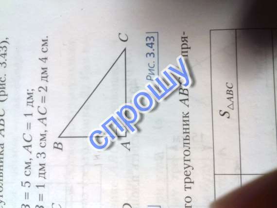 Найти площадь прямоугольного треугольника ABC если 1) AB = 14см,AC = 30 см рис 3.43