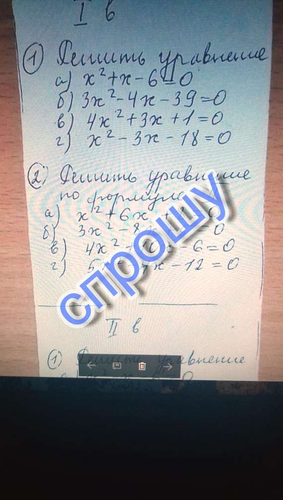 Помогите пожалуйста решить 1 вариант(по формулам корней квадратного уравнения)