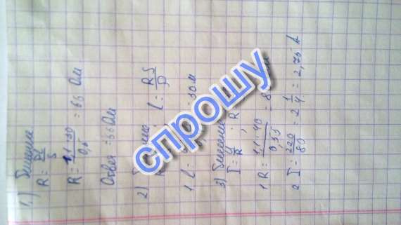 3)Какова сила тока проходит через нихромовую спираль обогревателя,если ее длина 40 м,а площадь поперечного сечения 0.55 м2?Напряжение 220 В.