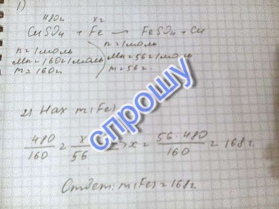 CuSO4(480 грамм) +Fe(х грамм) = FeSO4+Cu