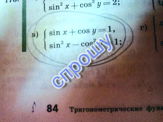 Выразим в первом уравнении sin x=1-cos y,подставим во второе.