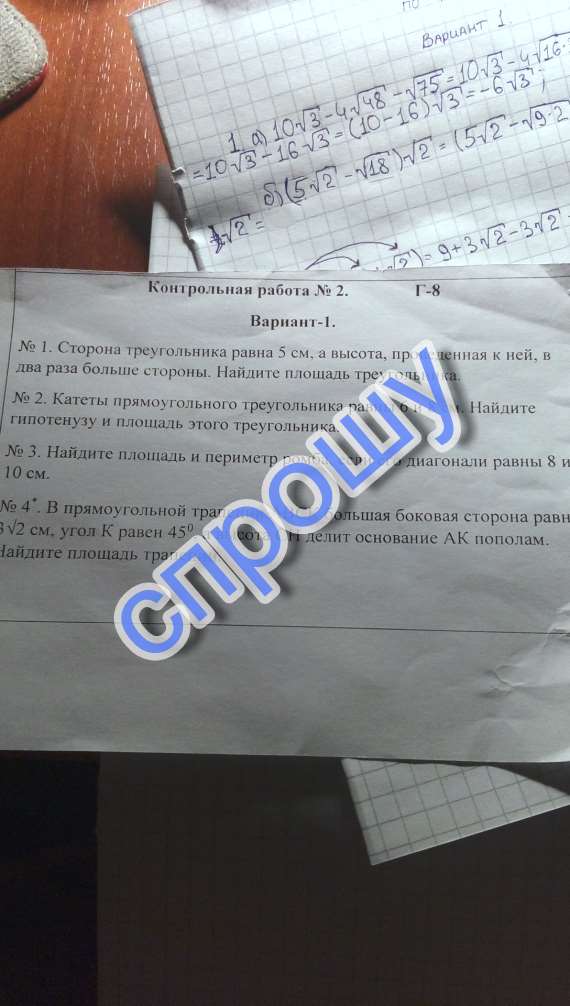 №4. В треугольнике СНК угол Н=90, угол К=45, значит угол НСК=45, следовательно трСНК - равнобедренный, зн. СН=НК=х