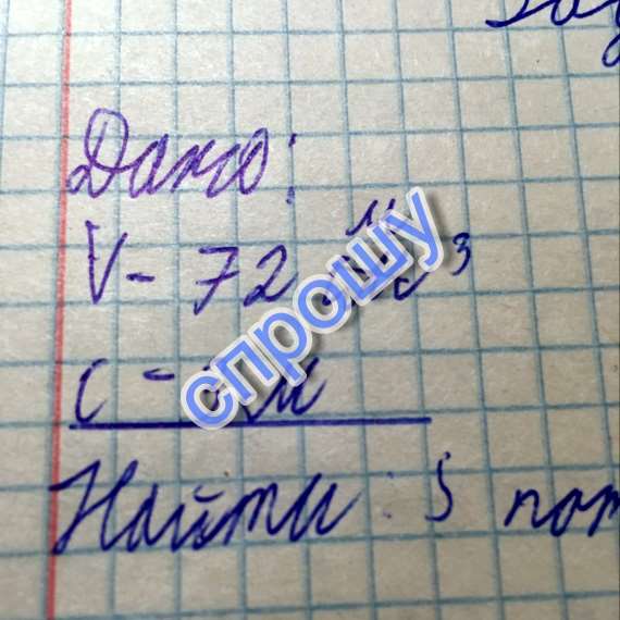 Параллелепипед равен 72 см в кубе высота одной стороны з м найти площадь потолка