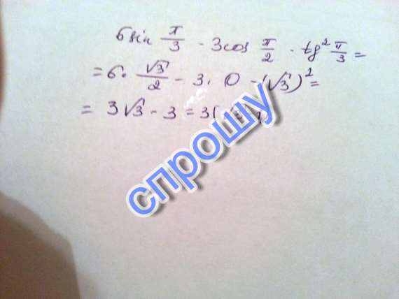 6 sin п/3-3cos п/2-tg^2п/3