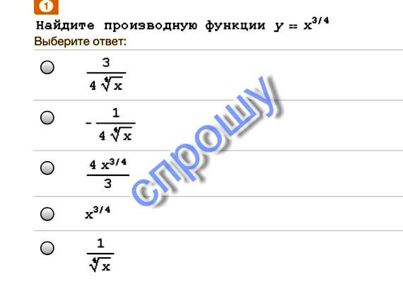 Y⁾=(x³/₄)⁾=3/4*х³/₄⁻¹ =(3*х⁻¹/₄) /4=3/(4⁴√х)
