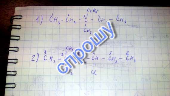 У пентана 5 углерода в цепи (С), я их пронумеровал сверху. Этил - C₂H₅, метил - CH₃. Они идут от цифры, которая дана в условии (3).