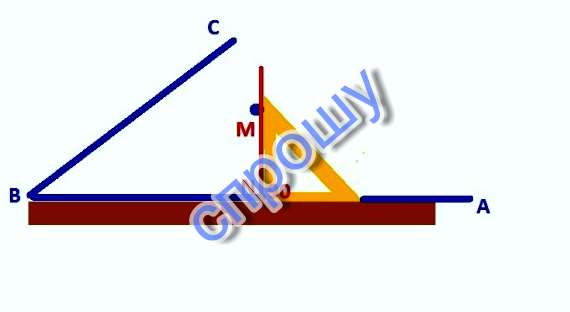 Смещаем угольник по линейке пока катет не пройдет через заданную точку М. Проводим перпендикуляр MN