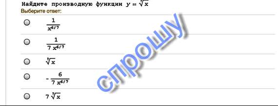 У⁾=(⁷√х)⁾=1/7*(х¹/₇⁻¹)= 1/7 * ( х⁻⁶/⁷ )=1 /(7* х⁶/₇ )