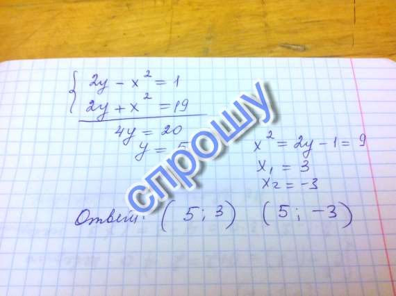 Решите систему уравнений методом сложения {2у-х^2 = 1 {2у+х^2 = 19 помогите пожалуйста