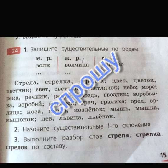 Женский род: стрела, стрелка, светлица, река, речка, воробьиха, грачиха, орлица, коза, мышь, мышка, львица;