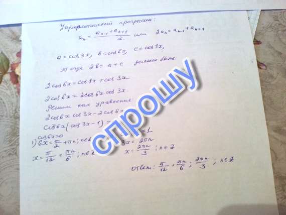 При каких значениях X числа a,b,c образуют арифметическую прогрессию, если a = cos3x, b = cos6x, c = cos9x