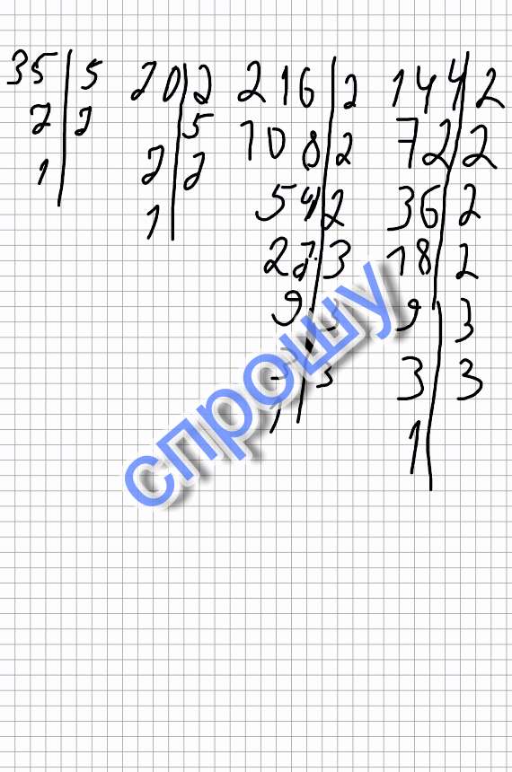35=5*7. 70=2*5*7. 216=2*2*2*3*3*3. 144=2*2*2*2*3*3