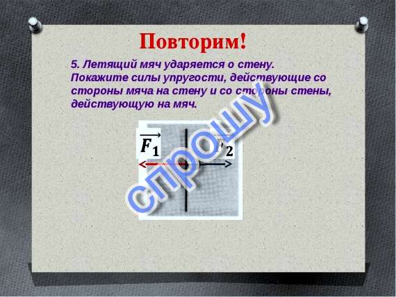 Летящий мяч ударяется о стену. Покажите на рисунке 127 силы упругости, действующие на мяч и на стену