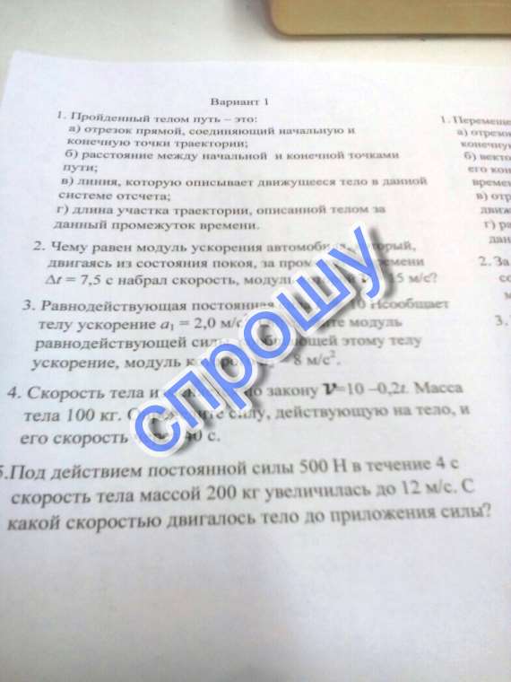v=10-0,2t F=ma; где a= - 0,2 м/с²