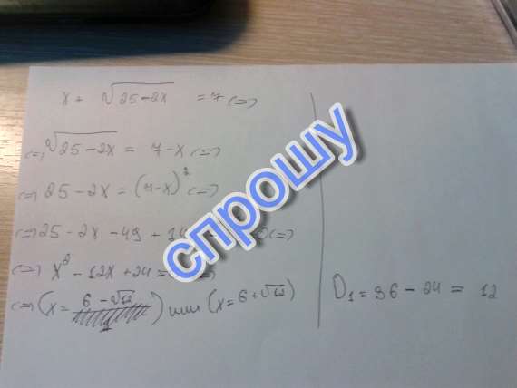 Решите срочно х+ под корнем 25-х2 = 7