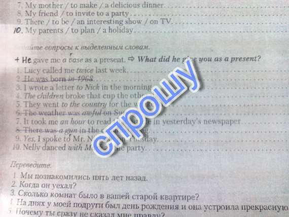 Задайте вопросы к выделенным словам