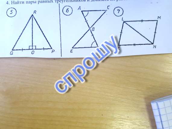 QRO и PRO равны так как у них равна 1 сторона(QO=OP) угол(QOR=ROP) и есть общая сторона(OR) равны по 1 признаку