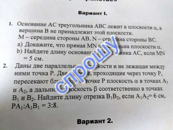 1) MN - средняя линия трегуольника, следовательно она паралельна основанию и отсюда паралельна плоскости. Средняя линия равна половине основания. Значит АС=10см
