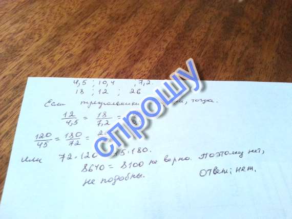 Подобны ли треугольники если стороны одного из них равны 4.5, 10.4, 7.2, а другого 18,12,26