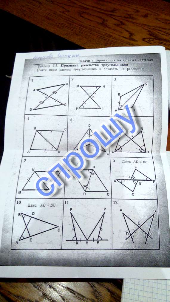 по 1 признаку равенства треугольников треугольники равны(признаки ниже)