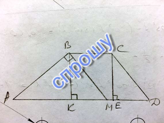 ВМ=СД, значит КМ=ЕД, значит АК и КМ - проекции боковых сторон трапеции на большее основание.