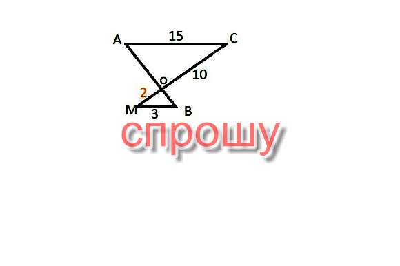 Отрезки АВ и СМ пересекаются в точке О так, что АС параллельна ВМ. найдите длину отркзка СМ, если АС = 15см, ВМ = 3см, СО = 10см.