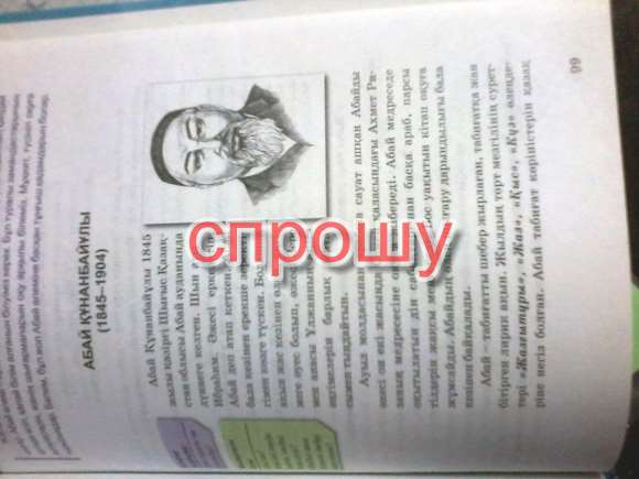 Здравствуйте!Можете помочь?У меня учебника нету Казахской Летиратуры Атамура.Можете сфоткать страницу про Абай Кунанбаева,пожплуйста строчно надо!