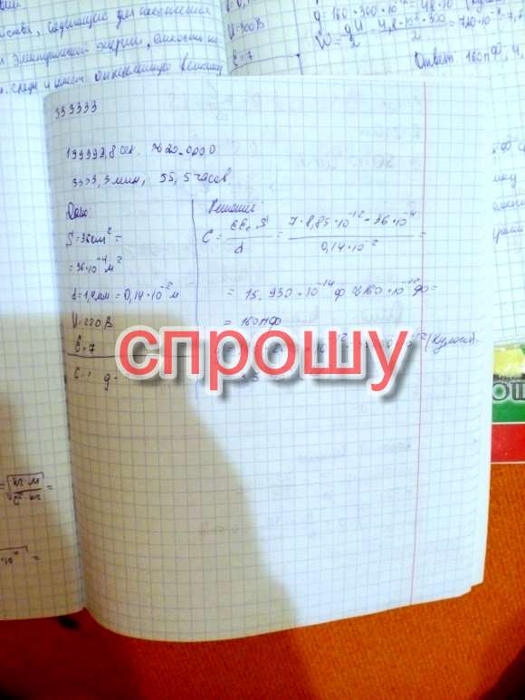 Определить емкость и заряд плоского слюдяного конденсатора с площадью обкладок S = 36см2 каждая,которые находятся на расстоянии d = 1,4мм,если напряжение между обкладками конденсатора U = 220В