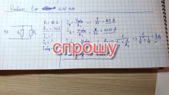 Резистор 1 равен 10 Ом, резистор 2 равен 40 Ом, два резистора паралельны. Напряжение ровняется 9В. Определите показания амперметра?