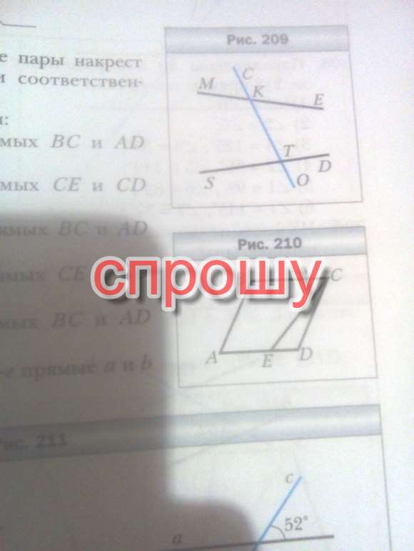 Во втором и четвёртом ответ отсутствует, поскольку о односторонних и соответствующих идет речь, когда прямые параллельные. А CE не параллельно CD.