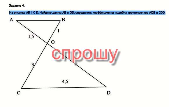 Из подобия следует, что k = OB/OC = AB/CD = AO/OD.