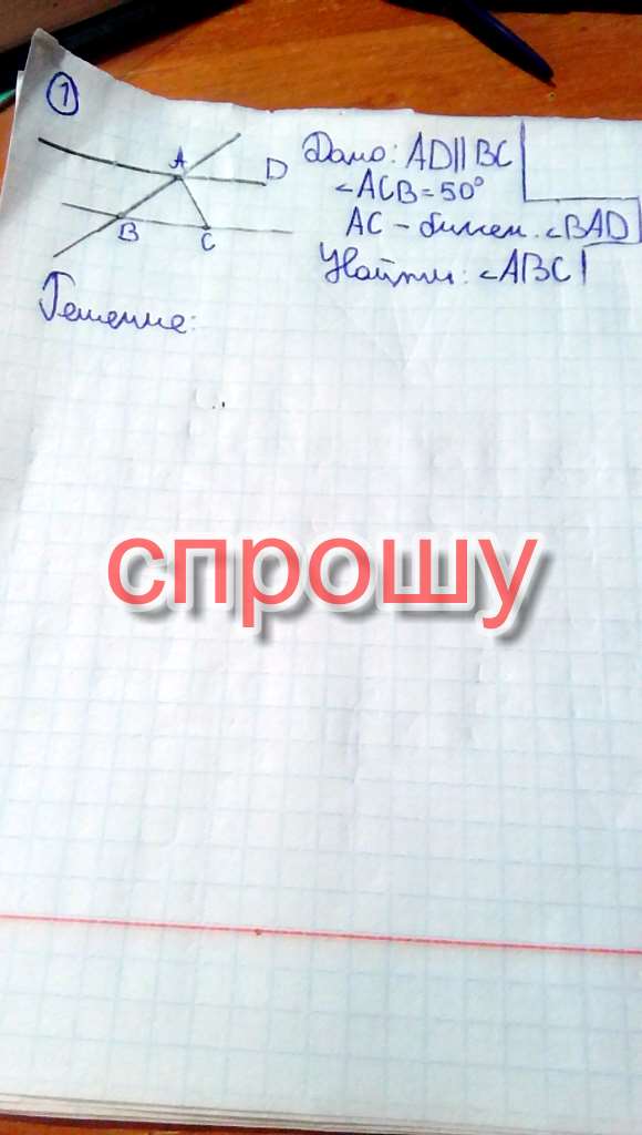 Т.к. АС-секущая линия, угол ДАС равен углу АСВ (Накрестлежащие) =50градусам.