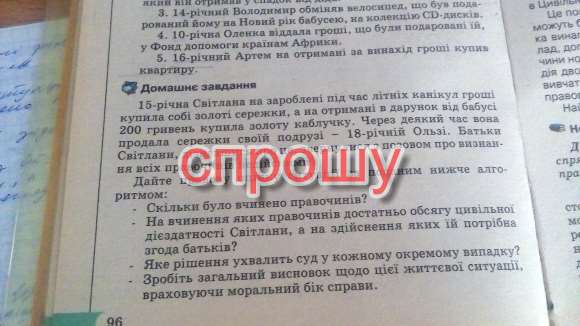 2. - Світлана може самостійно розпоряджатися своїм заробітком, стипендією або іншими доходами. Тому вона має право купляти дані речі без згоди батьків. Проте коли вона продавала сережки своїй подрузі вона повинна була отримати дозвіл від батьків згідно ст. 32 ч.4 ЦК України