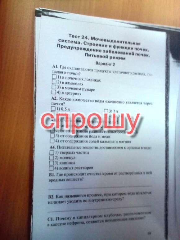 В2.Вообще для почек свойственны два процесса фильтрации и реабсорбции. Фильтрация - это процесс прохождения плазмы крови под действием кровяного давления через стенки капилляров находящихся в почечных клубочках. В результате чего получается первичная моча. Делее эта первичная моча подвергается дальнейшей очистке. Реабсорбция - это процесс обратного всасывания полезных веществ из почечных канальцев в кровь.