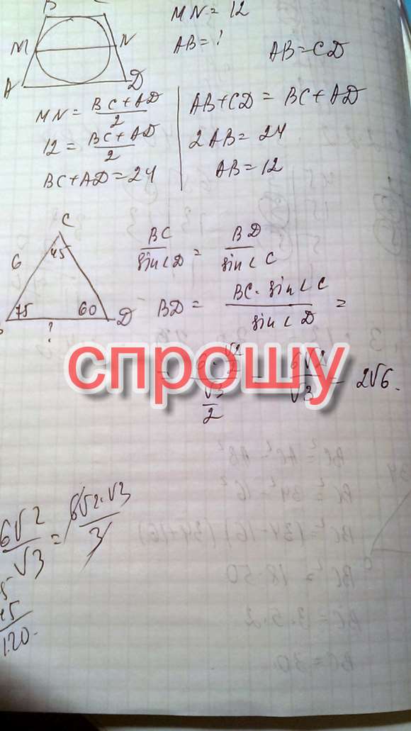 Дано: треугольник ВСД, ВС = 6, угол В = 75 градусов, угол С = 45 градусов. Найти ВД.