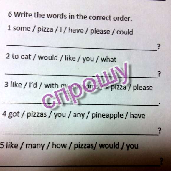 3. Id like a pizza with mushrooms, please.