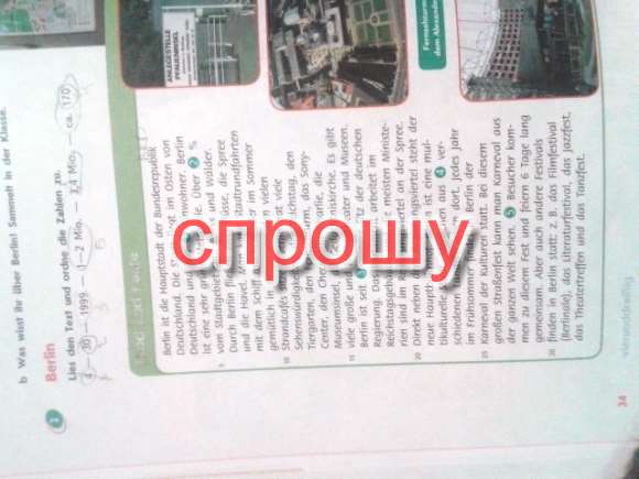 Берлин - столица федеративной республики Германия. Город расположен на востоке Германии и имеет 3,4 миллиона жителей. Берлин - очень зеленая метрополия. Свыше 30 части города это палки и леса. В городе протекают две реки, Шпрее и Хафель. Можно совершить экскурсию по городе на корабле или уютно посидеть летом в кафе у берега. В Берлине много достопримечательностей: рейхстаг, зоопарк, телебашня, центр Сони, чекпойнт Чарли (раньше приграничный КПП), остров-музей, церковь памяти. Есть много больших и маленьких театров и музеев. С 1999 года в Берлине снова заседает немецкое правительство. Парламент работает в здании рейхстага и большинство министров в правительственном квартале на реке Шпрее. Прямо рядом с правительственным кварталом стоит новый вокзал. Берлин - мультикультурный город. Люди из почти 170 различных стран живут там. Каждый год ранним летом проводится в Берлине культурный карнавал. На этом большом уличном празднике можно видеть карнавалы со всего мира. 1-2 миллиона посетителей приезжают на этот праздник и отмечают его в целом шесть дней. Но в Берлине проводятся и другие фестивали: например, фестиваль кино (Берлинале), литературный фестиваль, праздник джаза, театральная встреча и танцевальный праздник.