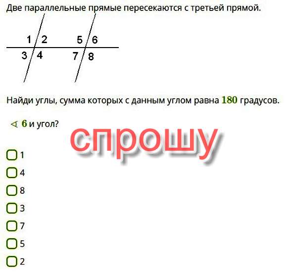Один из углов образовавшихся при пересечении двух параллельных прямых третьей