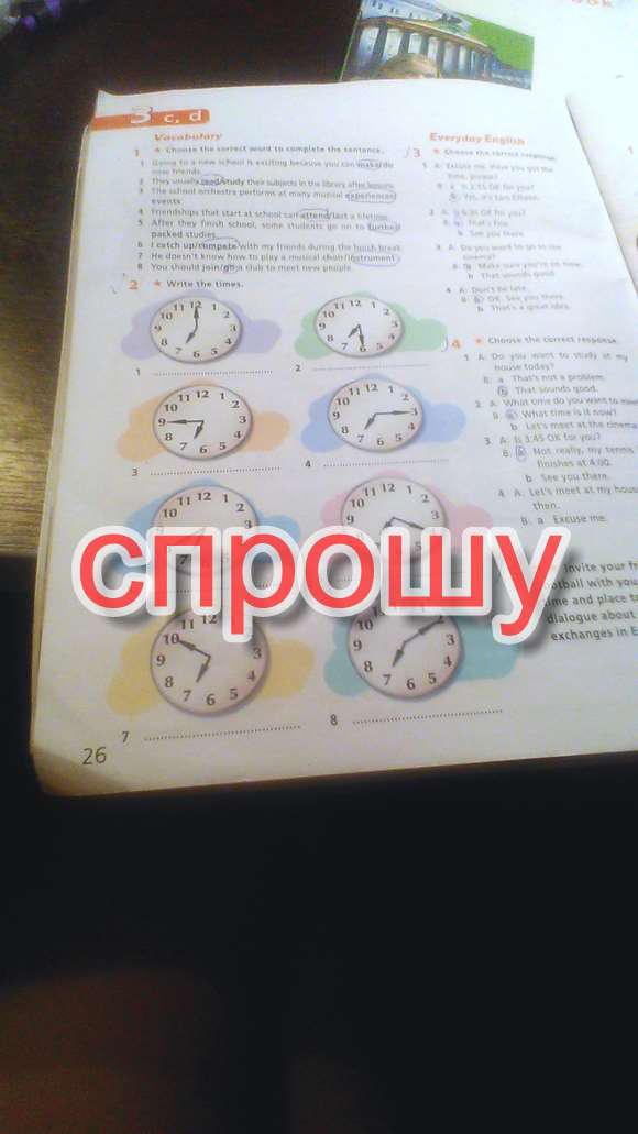1)Seven oclock. 2)Half past seven. 3)Cuote to seven.